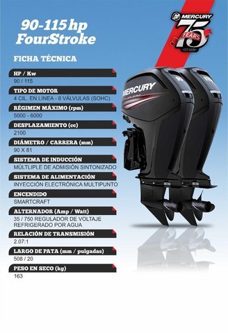 Los motores probados Mercury' TwoStroke ofrecen encendido fácil, gran desempeño y gran confiabilidad en todos los sentidos. En toda la gama encontrarás una serie de características que ayudan a hacer tu experiencia de navegación más grata y sin problemas. Características como un mayor desplazamiento de la capacidad del motor, que te da más empuje de baja gama, el diseño avanzado del carburador y los alternadores de alto rendimiento completamente regulados, que alimentan todos tus aparatos marinos electrónicos, asegurarán la absoluta excelencia de la navegación.